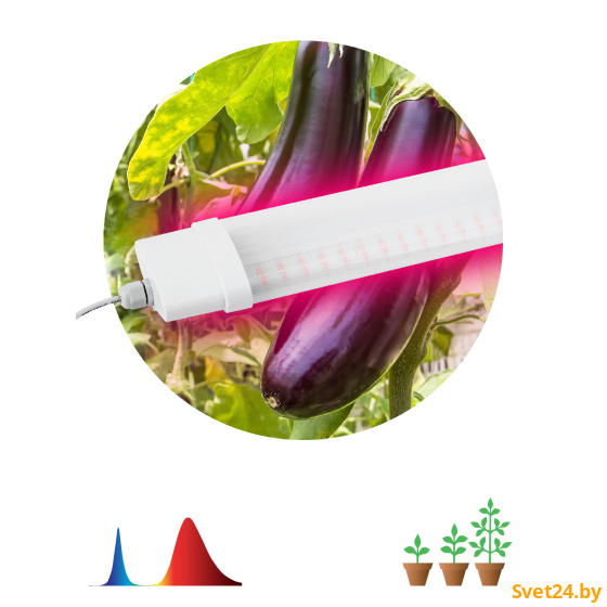Светильник для выращивания растений. Профессиональный спектр для периода вегетации. Мощность: 36 Вт., Напряжение питания: 220-240V; 50-60 Гц.; PF 0.9, Пульсации < 5%;IP65, Ra 80