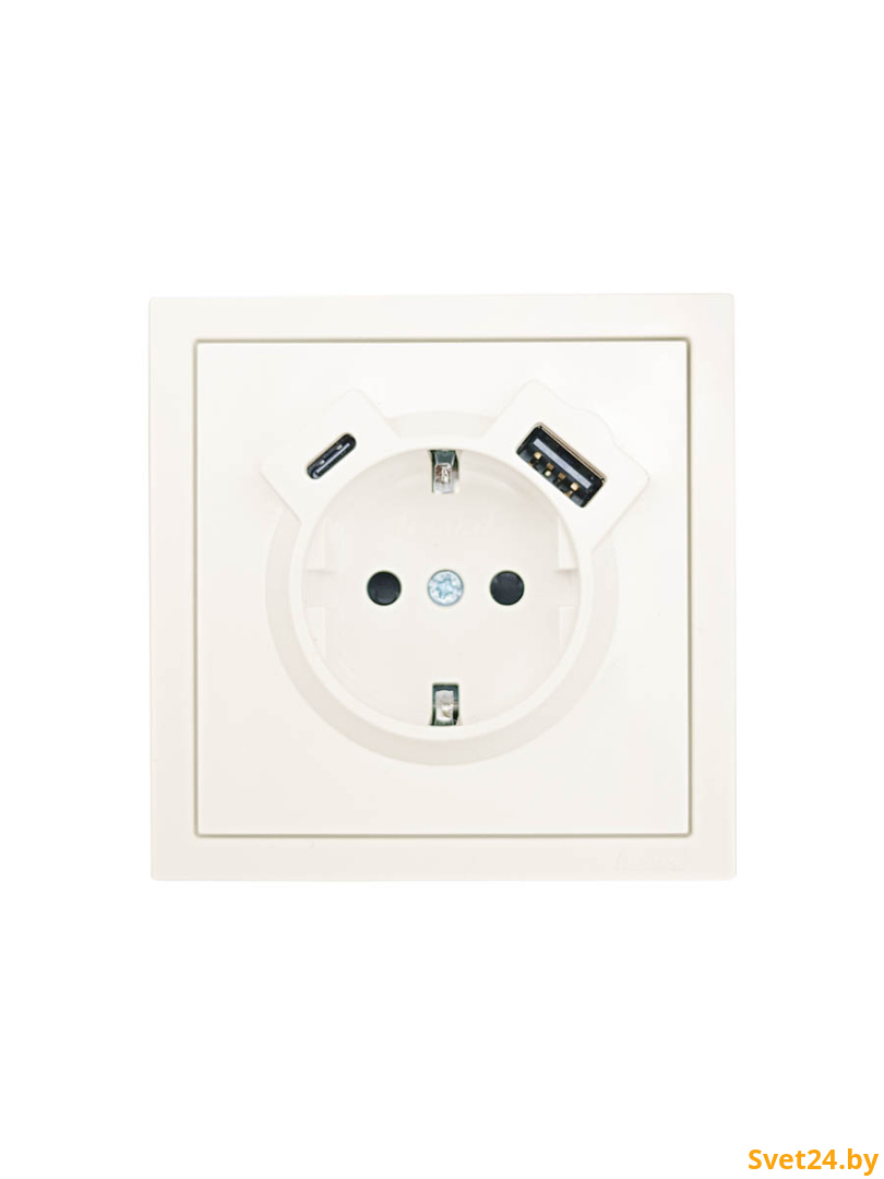 Розетка с/з TC + USB разъем слоновая кость Lezard Zima (без рамки)
