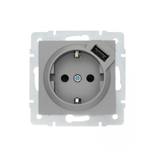 Розетка с/з + USB разъём платина Lezard Vesna (без рамки)